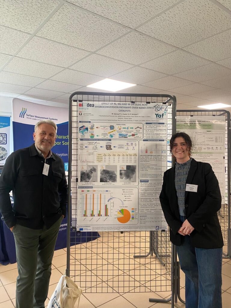 We are proud to share that the poster “Effect of Ni, Mo, and W on Oleic Acid Hydroconversion Pathways over Nano-ZSM-5 Catalysts”, presented by Maria Spinosa (DC8, YAF – MSCA Doctoral Network) at the 41st Annual Congress of the Groupe Français de Zéolithes (Port-Bail, March 30 – April 2, 2026), has been awarded the Best Poster Award.